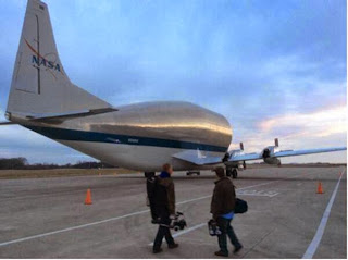NASA unloads composite rocket tank of tomorrow from legendary Super Guppy for tests in Alabama